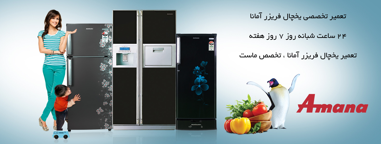 تعمیرات یخچال فریزر آمانا، تعمیرات ساید بای ساید آمانا، تعمیرات ماشین لباسشویی آمانا.